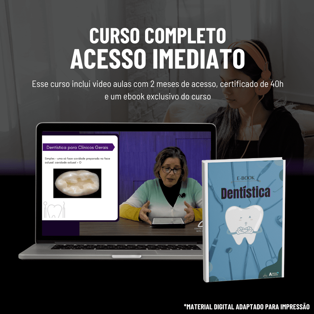 Cronograma do curso: Introdução, Objetivos e Classificações na Dentística, Formas, Extensões e Classificações de Cavidades, A Evolução das Resinas, A Dentística como um Produto do Consultório, Casos Clínicos e Conclusões Gerais