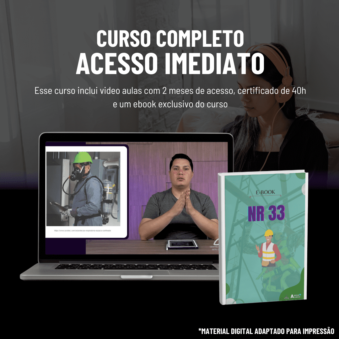 Cronograma do curso: Segurança e saúde em locais de trabalho confinado, responsabilidade do trabalhador, medidas técnicas e riscos, riscos, avaliação e ventilação, equipamentos necessários e prática de colocação deles, medidas administrativas e pessoais